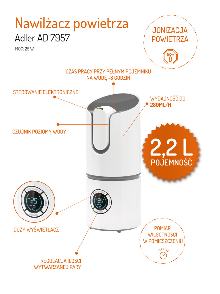 Adler Ovlaživač Vazduha sa LCD displejom AD7957