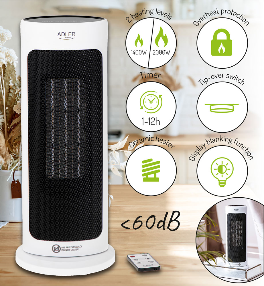 Adler Stubna keramička grejalica sa ventilatorom i tajmerom AD7738