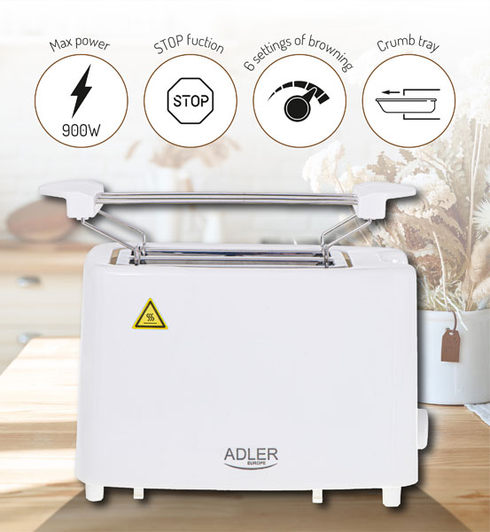 Adler Toster za 2 kriške hleba 1800W beli AD3223