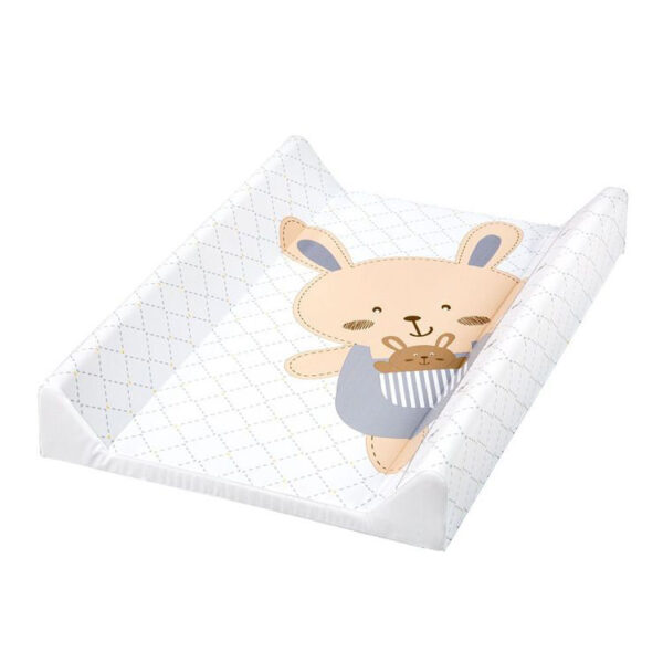 - Tvrda podloga za presvlačenje ima posebno profilisane strane koje sprečavaju da dete klizi i prevrće se tokom previjanja.