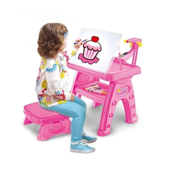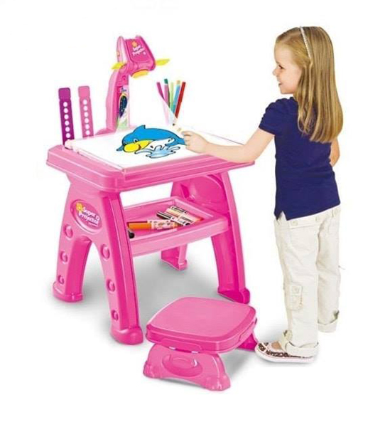 - Super projektor tabla za decu u roze boji sa 24 obrasca (paterna) i 12 vodenih boja (flomastera).