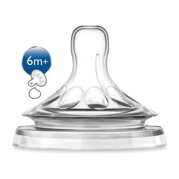 - Avent cucla natural sa prorezom i promenljivim protokom za bebe za gušću hranu, u pakovanju se nalaze 2 cucle. Izrađene od silikona bez BPA, jedinstvenog dizajna poput dojke, sa dvostrukim ventilom koji smanjuje stomačne grčeve