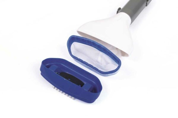 - Usisivač za čišćenje bazena AquaScan Electric Bestway 58340 dolazi sa drškom dužine 1,26m i vrećicom za skupljanje nečistoća, koja se lako uklanja iz usisivača radi čišćenja.