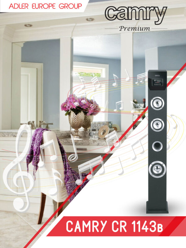 - Konstrukcija tipa CR1143 u obliku stuba omogućava vam da uštedite prostor na podu ili polici, a da pritom sačuvate savršenu distribuciju zvuka.