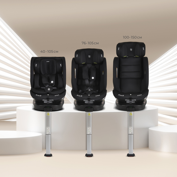 - • Od 100 do 150 cm – koristi se sa sigurnosnim pojasom automobila sa 3 tačke vezivanja, postavljanje sa ili bez ISOFIX-a (u zavisnosti od konfiguracije vozila). Potporna noga se ne koristi u ovom režimu.