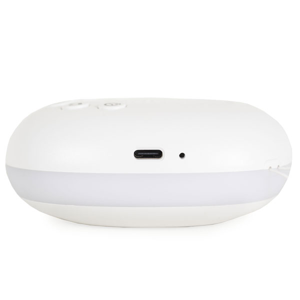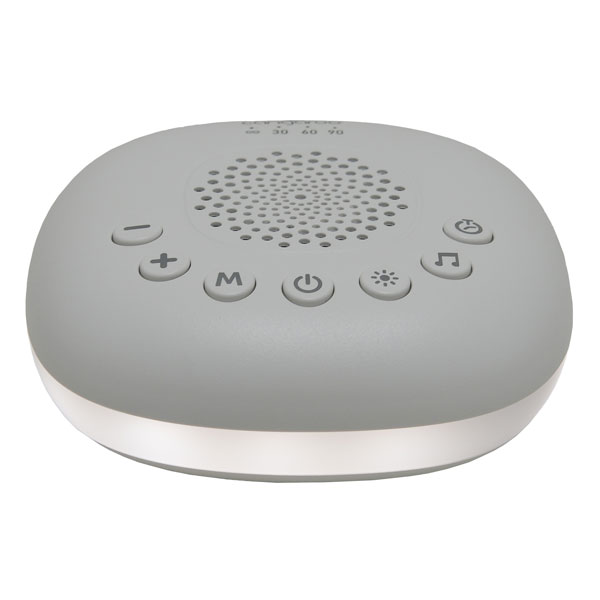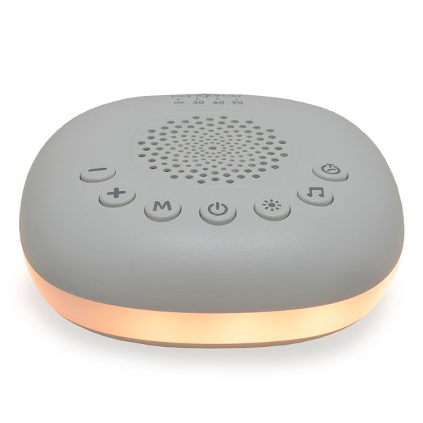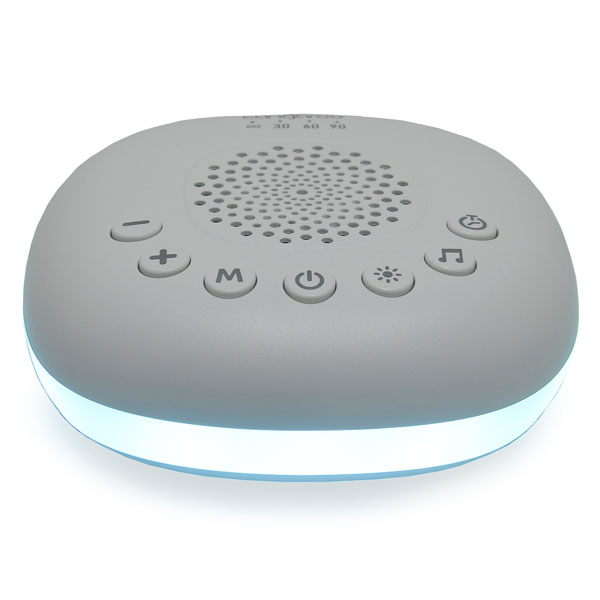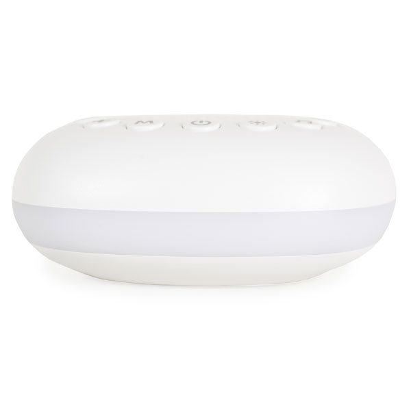 - To je uređaj sa belim šumom. Lagan i pogodan za nošenje. Tu je i priključak. Svetlosni efekti – belo svetlo, prigušeno belo svetlo, spora promena različitih boja i opcija za fiksiranje boje po izboru.