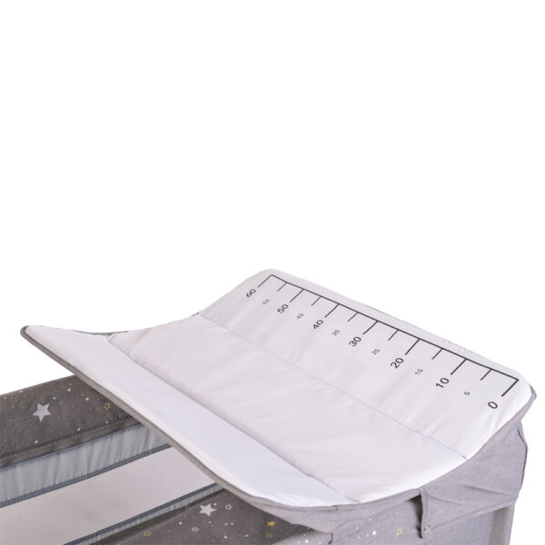 - Krevetić ima 2 nivoa podešavanja visine dušeka, kao i mekani nivo promene na kome možete da menjate pelene.