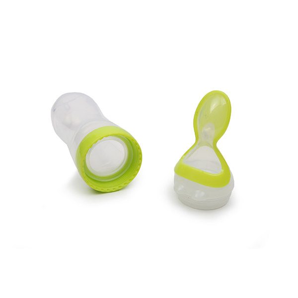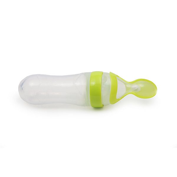 - Flašica sa silikonskom kašičicom idealna je za prve bebine obroke.