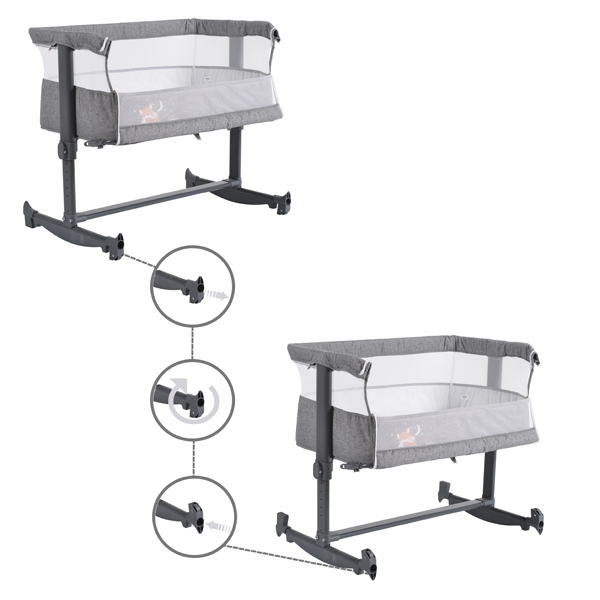 - Krevet za bebe se može koristiti u tri različite konfiguracije – pričvršćen za roditeljski krevet, kao samostalni krevet za bebu sa podignutom pregradom i kao kolevka.