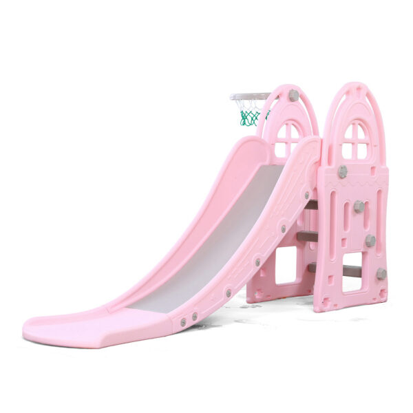 - Dečiji tobogan sa košarkaškim obručem „VERENA“ u pink boji pružiće vašem detetu sate zabavnih igara.