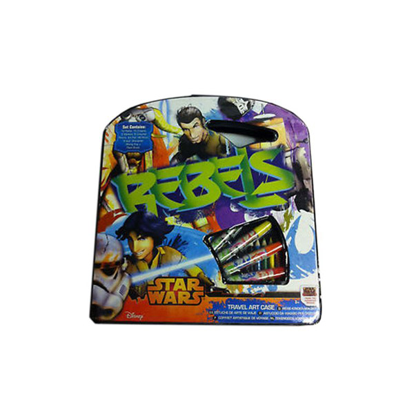 - STAR WARS-set za crtanje koji sadrži 10 voštenih bojica, vodene boje 1/12, šest flomastera, blok za crtanje,6 drvenih bojica, gumicu, zarezač i jednu drvenu olovku.