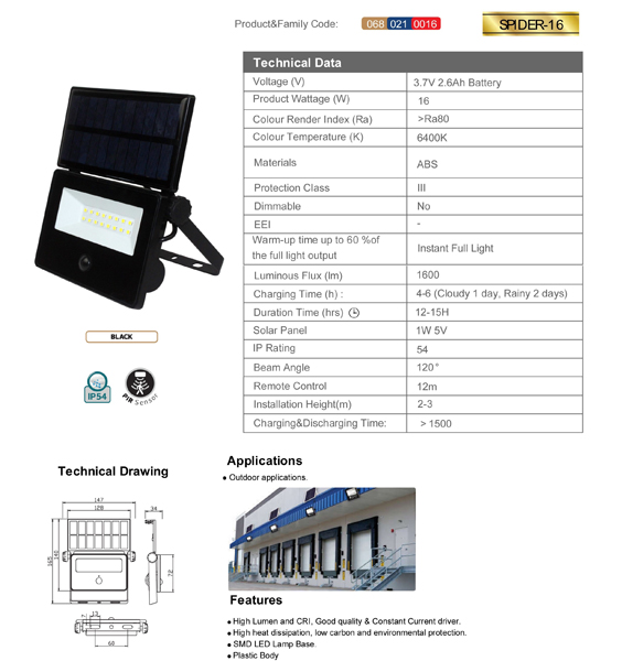 Oznake: led reflektor, solarni reflektor, spider-16