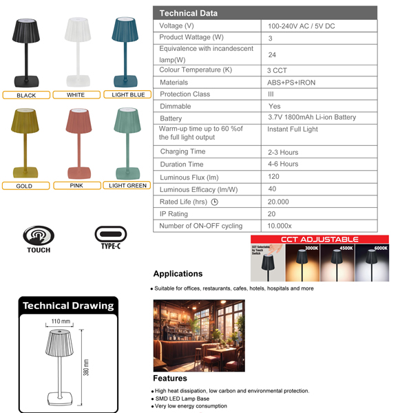 Horoz Electric LED Stona lampa 3W Merida 3CCT – Više boja 050 001 0001