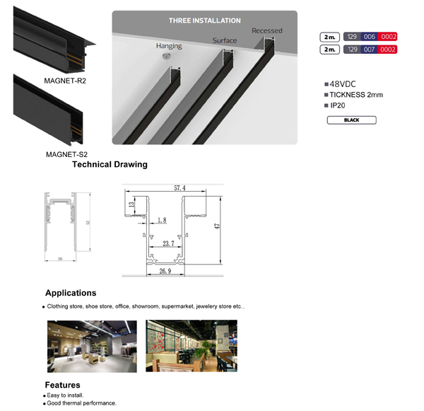 Horoz Electric Magnetna šina ugradna 2m Magnet-R2 crna 129 006 0002