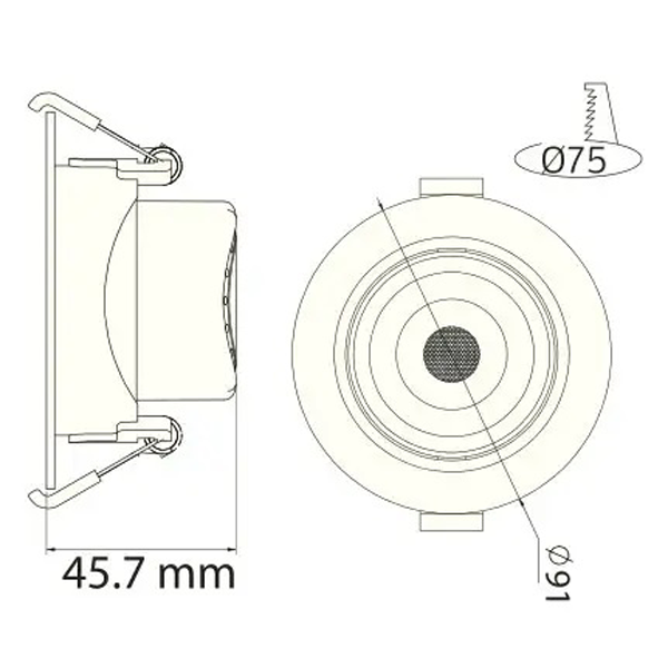 - Dimenzije otvora za ugradnju (mm): Ø:75mm