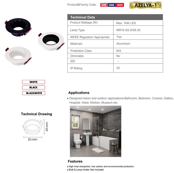 - Predviđena je za sijalice: MR16 GU5.3 ili GU10 max.10W led