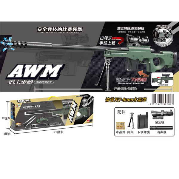 - Igračka puška AWM snajper koja koristi 7-8 mm gel kuglice (vodene kuglice)