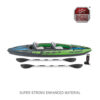 - Intex Challenger™ K2 Kajak je sportski i zabavan, sa aerodinamičnim dizajnom za lako veslanje. Svetlo zelena boja i sportska grafika čine kajak vidljivim na vodi. Odličan je za istraživanje jezera i mirnih reka .Ovaj kajak iz Sportske serije savršen je za dve odrasle osobe. Lagan i kompaktan, ovaj kajak je vrlo jednostavan za sastavljanje, a sa “Boston” ventilom, pumpa se i ispušta se za nekoliko minuta.
