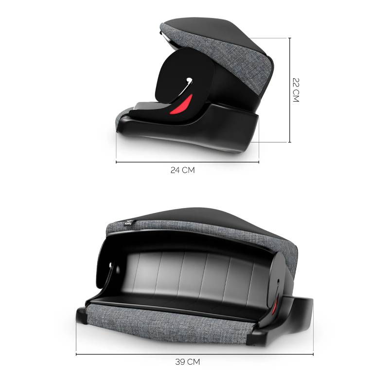 - K-Fix+ sistem apsorbuje veliki deo energije tokom sudara pre nego što sila stigne do osetljivih delova tela deteta. Takođe vam omogućava da postignete veći podesivi ugao nagiba u ležećem položaju (između 90° i 115°).