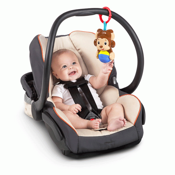 - Jedan mekani luk sa igračkama: bebi ogledalo, glodalica u obliku lista, muzičko majmunče i zvečkica u obliku žabice