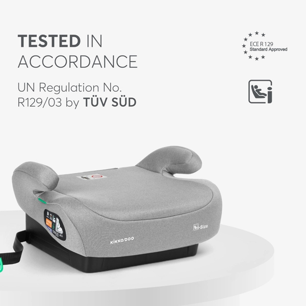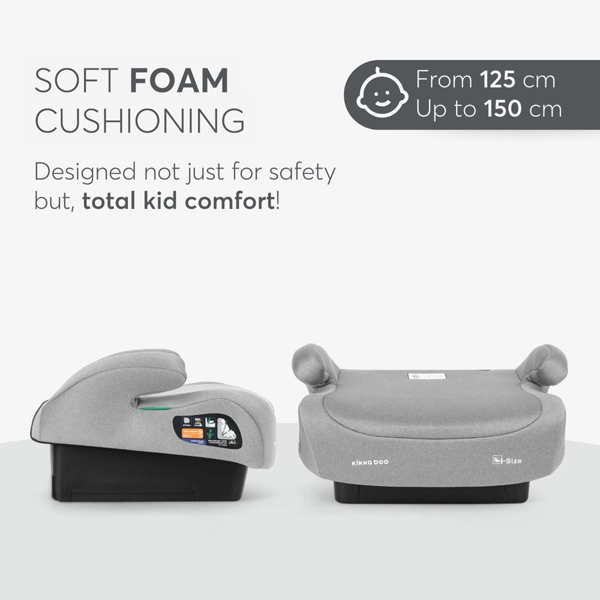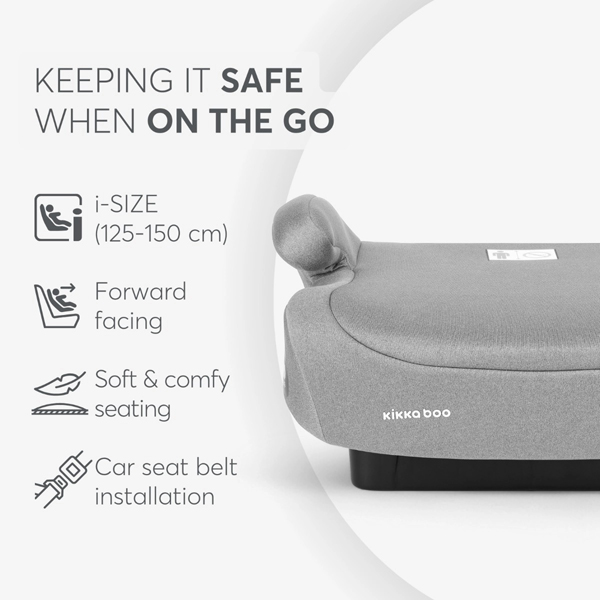 - Ovo dodatno sedište je idealno za decu visine između 125–150 cm i pridržava se najnovijih bezbednosnih standarda i-SIZE, osiguravajući sigurnost i udobnost vašeg deteta na svakom putovanju.