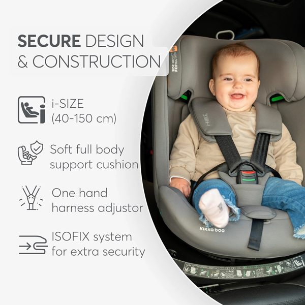 - Praktična rotacija i instalacija – Rotacija od 360 stepeni omogućava lak pristup sedištu, dok ISOFIX sistem i gornji kaiš pružaju dodatnu bezbednost i čine instalaciju jednostavnom.