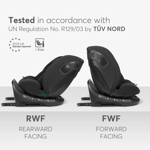 - Testirano u skladu sa UN propisom br. R129/03 od strane TÜV NORD-a, auto-sedište i-HIKE nudi savršen balans bezbednosti, fleksibilnosti i udobnosti. Njegove inovativne karakteristike čine svako putovanje bezbednim i prijatnim, čuvajući vaše dete sigurnim i srećnim.