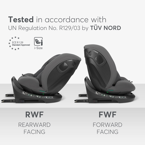 - Testirano u skladu sa UN propisom br. R129/03 od strane TÜV NORD-a, auto-sedište i-HIKE nudi savršen balans bezbednosti, fleksibilnosti i udobnosti. Njegove inovativne karakteristike čine svako putovanje bezbednim i prijatnim, čuvajući vaše dete sigurnim i srećnim.