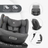 - Praktična rotacija i instalacija – Rotacija od 360 stepeni omogućava lak pristup sedištu, dok ISOFIX sistem i gornji kaiš pružaju dodatnu bezbednost i čine instalaciju jednostavnom.