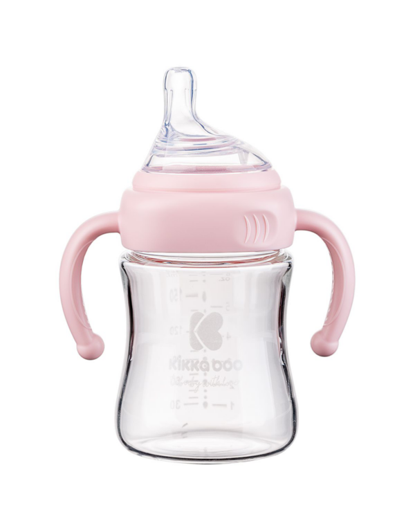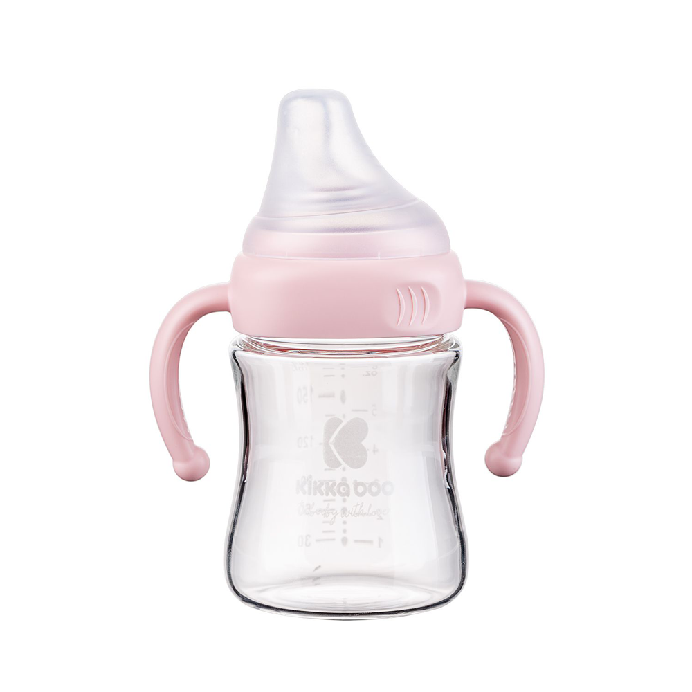 Kikka Boo Bebi Flašica staklena sa ručicama 180ml Pink KKB20090