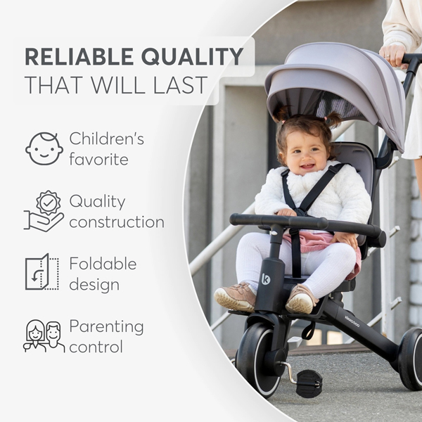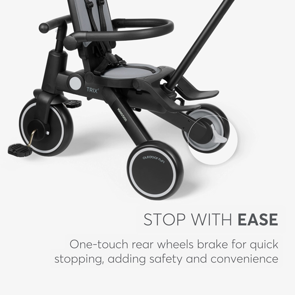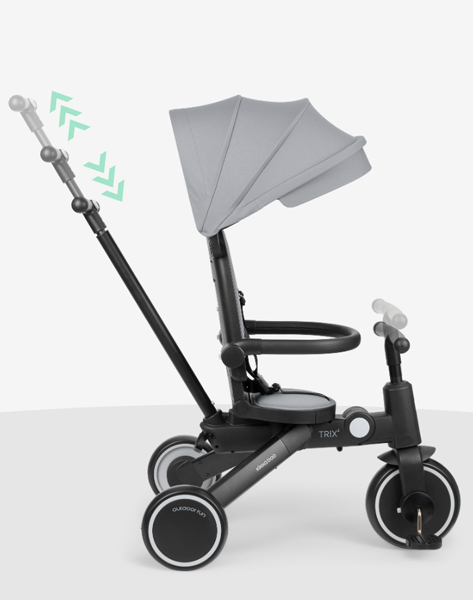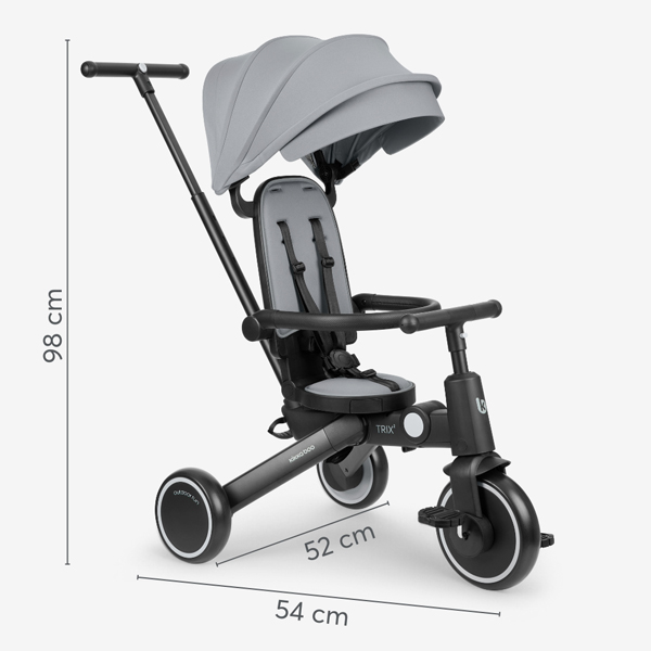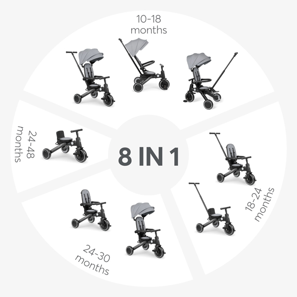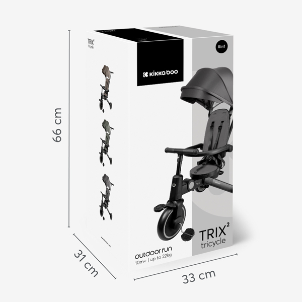 - Krenite u svakodnevne avanture sa TRIX 2 – stilskim i svestranim 8-u-1 triciklom dizajniranim da raste sa vašim detetom od 10 meseci do 4 godine (48 meseci). Pažljivo dizajniran da kombinuje udobnost, bezbednost i pametnu funkcionalnost, on se besprekorno transformiše iz kolica kojima upravljaju roditelji u samostalni tricikl, podržavajući svaku fazu putovanja vašeg mališana.
