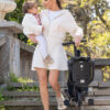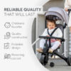 - Udobnost i bezbednost – Lagan i izdržljiv aluminijumski ram, podesivi naslon za leđa, sistem pojaseva sa 5 tačaka vezivanja, odvojiva sigurnosna daska, podesiva i odvojiva nadstrešnica i kočnica na zadnjem točku za dodatnu bezbednost.