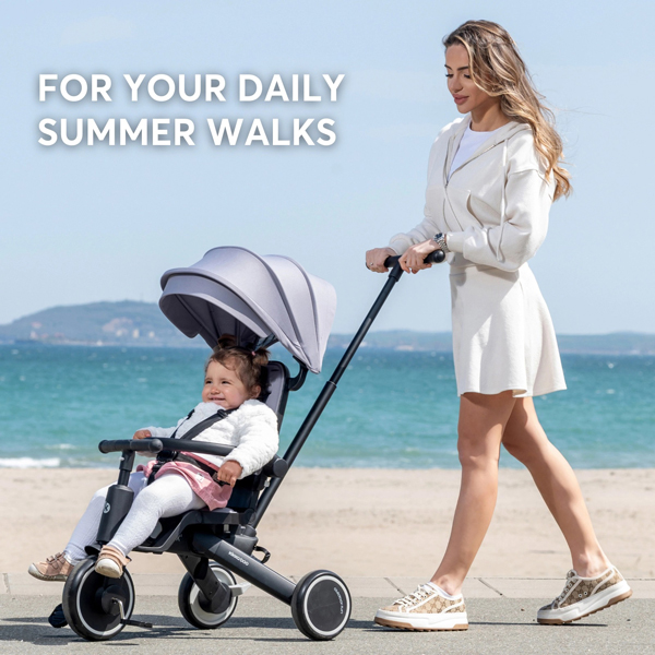 - Svestranost 8-u-1 – Nudi višestruke režime korišćenja: Režim za brigu – okrenut napred (10–18 m), okrenut unazad (10–18 m) i sa naslonom za pomeranje (10–18 m); Puskanje i vožnja – sa sigurnosnom daskom (18–24 m), bez naslona (18–24 m) i bez roditeljske ručke za potiskivanje (24–30 m); Vožnja bez nadstrešnice (24–30 m) i režim bicikla (24–48 m).