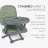 - Podesiv i siguran – Sadrži podešavanje visine u 4 pozicije i sistem pojasa u 3 tačke kako bi vaše dete bezbedno sedelo tokom obroka