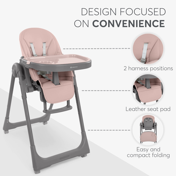 - Fleksibilna i potporna – Naslona za leđa sa 5 položaja, oslonac za noge sa 3 položaja i podešavanje visine u 8 položaja obezbeđuju savršen položaj tokom obroka za decu koja rastu.