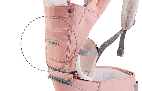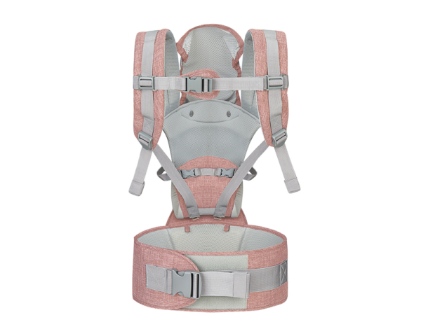 - Široki pojas i sedište pomažu u ravnomernoj raspodeli težine bebe na struk i gornji deo leđa