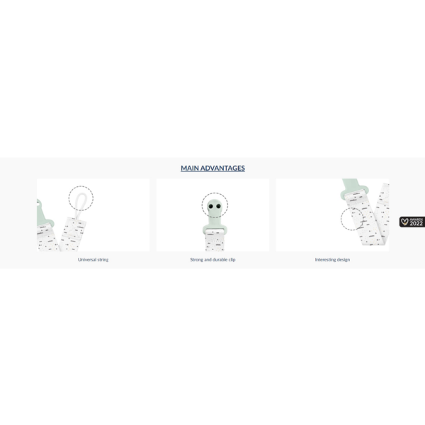 - Sa svojom mekom vezom i čvrstom kopčom, savršen je za roditelje koji žele da budu sigurni da će cucla njihove bebe ostati čista i bez bakterija.