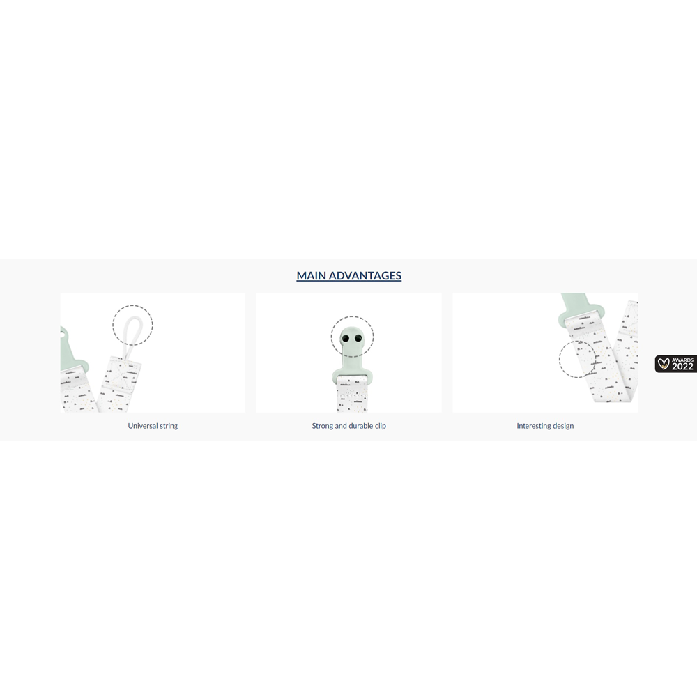 - Sa svojom mekom vezom i čvrstom kopčom, savršen je za roditelje koji žele da budu sigurni da će cucla njihove bebe ostati čista i bez bakterija.