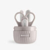 - Komplet za negu – Uključuje makaze sa kružnom glavom, staklenu turpiju za nokte, makazice za nokte sa ergonomskom drškom i pincete sa drškama protiv klizanja i zaobljenim vrhovima, što obezbeđuje nežno i bezbedno sečenje.