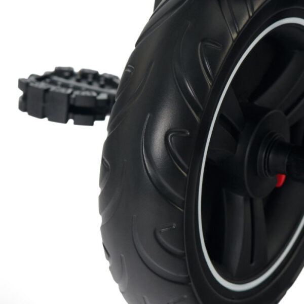 - Funkcija „praznog hoda“ omogućava detetu pedaliranje bez pokretanja tricikla. Mališan sa puno radosti okreće pedale, a roditelj kontroliše brzinu vožnje.