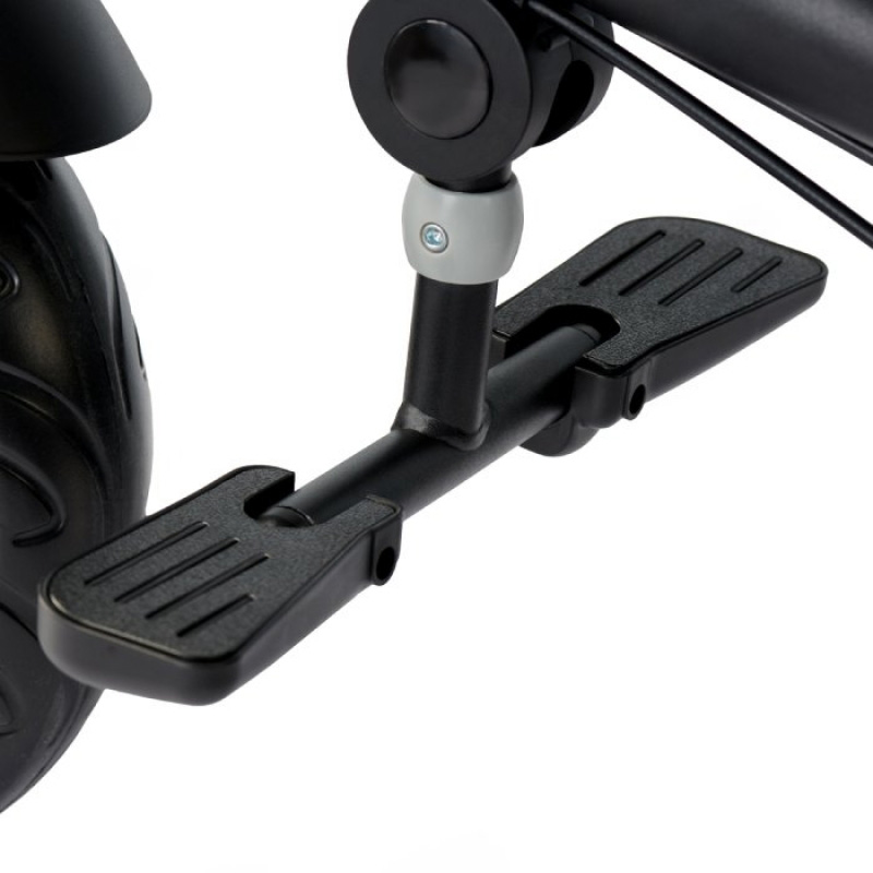 - Sklopivi oslonci za noge pored prednjih točkova savršeni su za decu koja još ne mogu dohvatiti pedale. Starijoj deci omogućava odmor, npr. nakon dugog izleta.