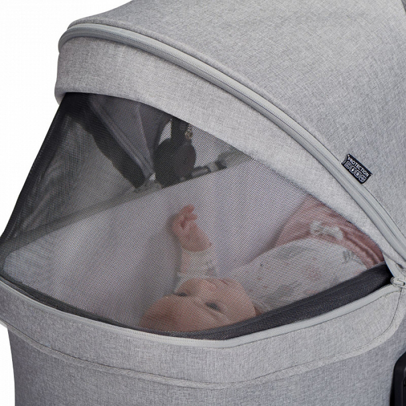 - Na kolevci se nalazi prostrana tenda koja će leti štititi dete od sunca a zimi od hladnoće.