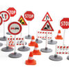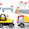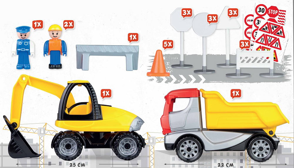 - U setu se nalaze kamion, bager, 17 saobraćajnih znakova, ograda i 3 lutkice