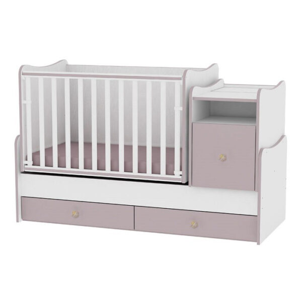 - Sastoji se iz tri dela koji čine jednu celinu (kolevka, krevetac za odraslo dete i ormarić)