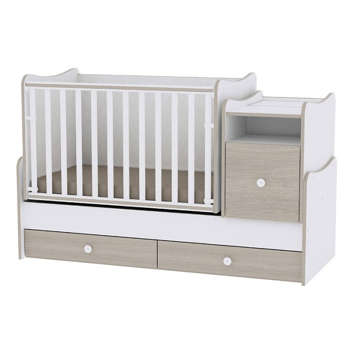 - Sastoji se iz tri dela koji čine jednu celinu (kolevka, krevetac za odraslo dete i ormarić)