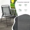 - Stolice su izrađene od čvrste čelične konstrukcije i prozračne Textilene 2×1 tkanine. Ova kombinacija omogućava: