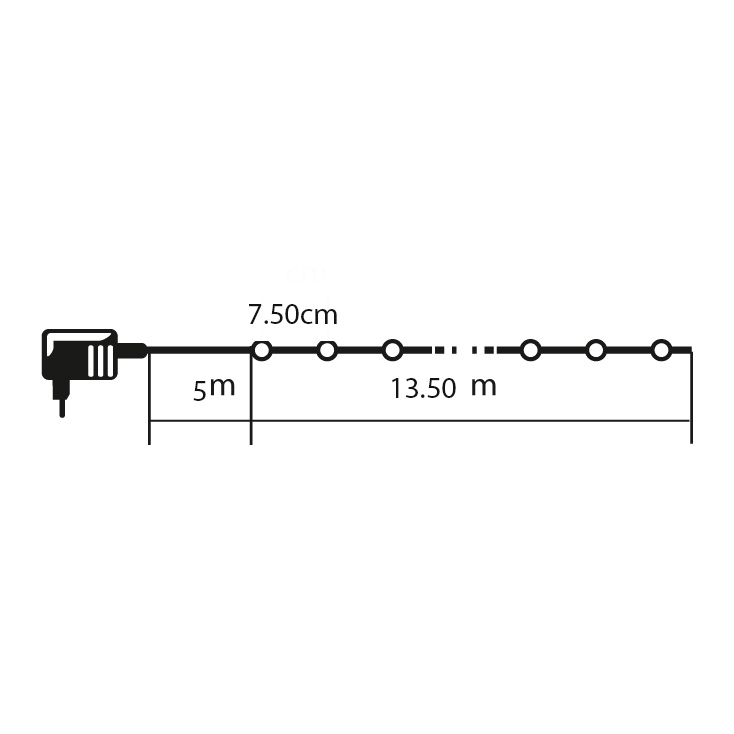 - Dužina kabla od prve do poslednje sijalice: 1350 cm