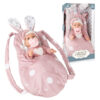 - Beba je udobno smeštena u mekanoj nosiljci (46cm ) koje dete može nositi na ledjima ili grudima.