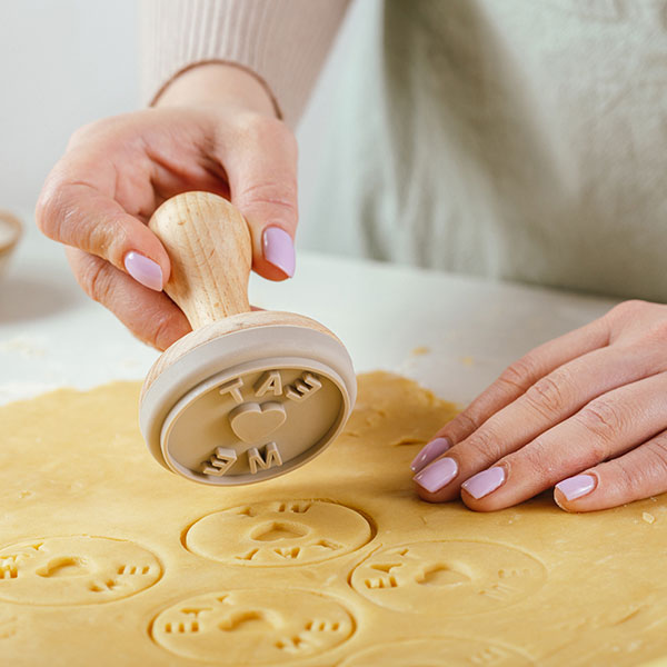 - Lagano pritisnite pečat preko testa dok se ne formira oblik kolača sa porukom pečata.