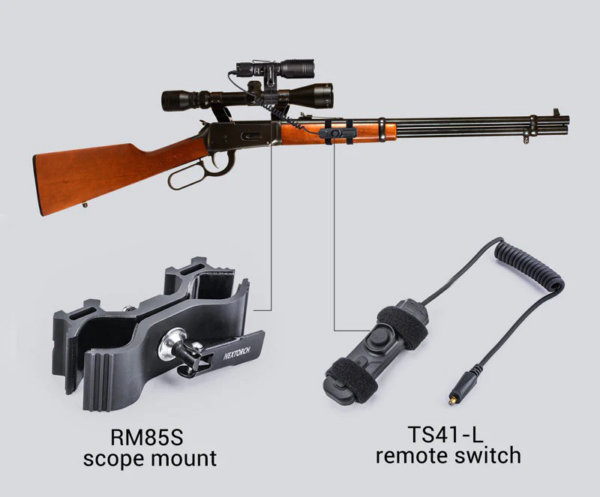 - Komplet sadrži: baterijsku lampu, RM85S držač za lampu, TS41-L miroprekidač, UC4 USB kabal za punjenje i 1 x 2600 mAh18650 Li-ion bateriju.